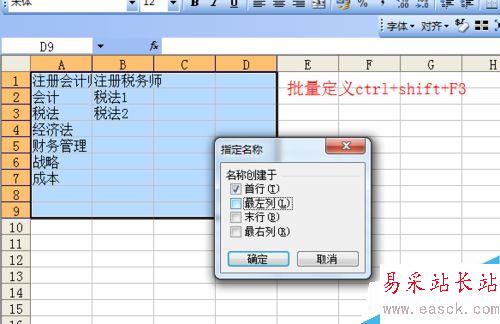 3、批量定義名稱,直接使用ctrl+shift+F3直接進行批量名稱定義,給電腦工作的我們省下的不只是時間。