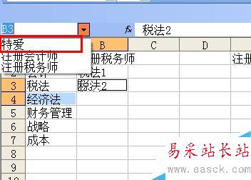 其次,他還有定義特殊的單元格,比如說找小編的特別愛的科目經濟法和稅法2,小編便選擇這兩個單元格,并在名稱框中輸入 特愛回車,從此以后,小編的名稱框下將顯示特愛名稱。