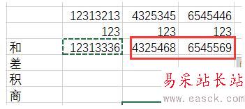 7.后面幾個單元格想要進行類似的運算處理,可以直接復制第一個求和單元格,如圖Excel也會對后面兩列進行相同的求和計算哦。