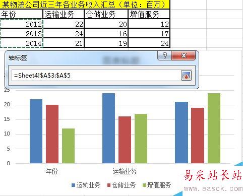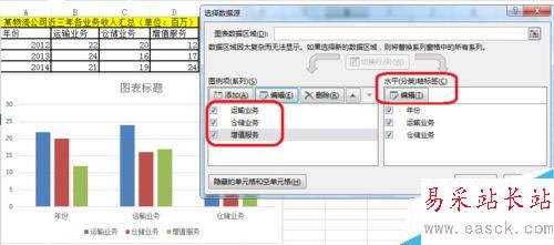 如圖所示,把圖例名稱改為運輸服務,倉儲服務,增值服務。