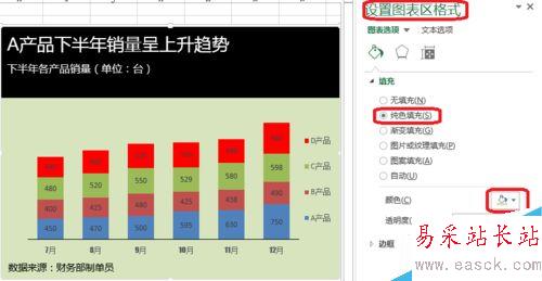 4.點擊設置圖表區格式——純色填充,就能對圖例的顏色進行置換。