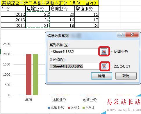 對系列名稱和系列值進行設置。