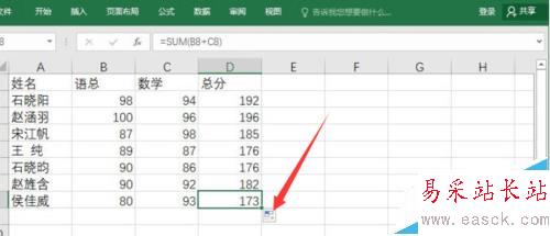 6、在工作表的最后一行添加新的數(shù)據(jù),當(dāng)選擇該行的E8單元格時(shí),Excel將上一行的公式擴(kuò)展到該單元格