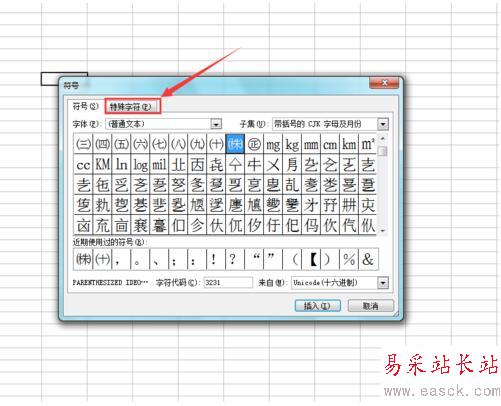 5.在該對話框內找到特殊字符選項,如圖所示: