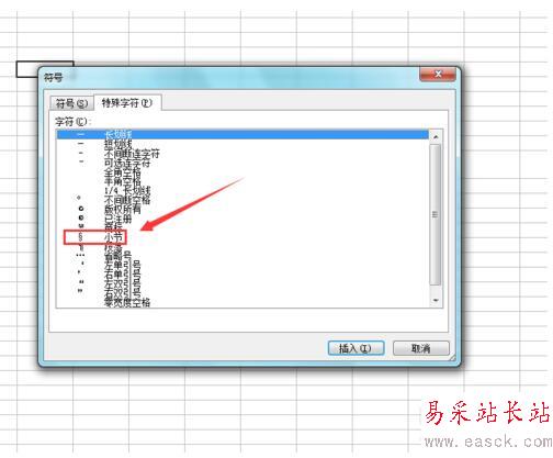 7.點擊小節選項,點擊插入,可以看到我們選擇的單元格里就輸入了小節符號,如圖所示: