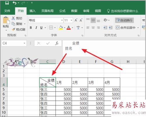 5.對角線劃分好了,就可以在斜線上下寫入標(biāo)題了或內(nèi)容了。
