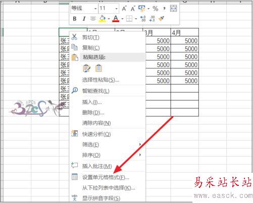 2.選中要劃分斜線的單元格右鍵設(shè)置單元格。