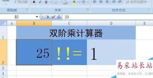 現在在B2單元格中輸入要求雙階乘的數據,如圖所示。