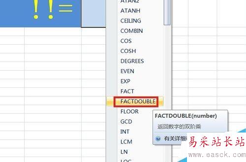 然后在下拉列表中找到“FACTDOUBLE”函數。
