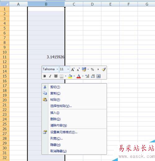 4、我們可以選擇這列右鍵,也可以選擇這個單元格右鍵