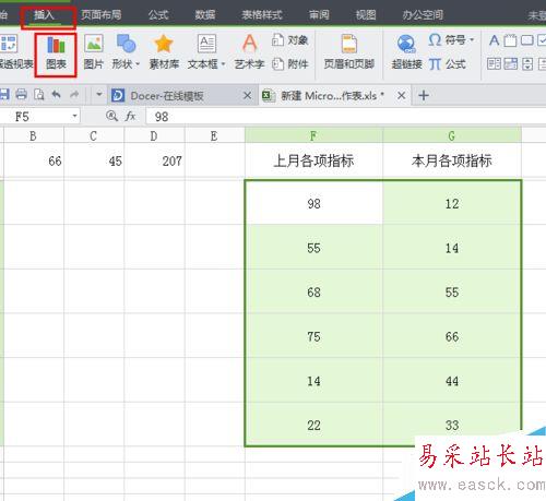 2、選中兩組數據,點擊插入--圖表;
