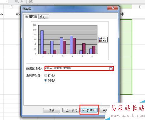 4、數據區域剛剛已經選定,默認的。直接可以下一步;