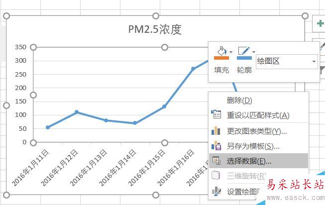 在剛剛建立的圖表數據上右鍵單擊,選擇“選擇數據”。