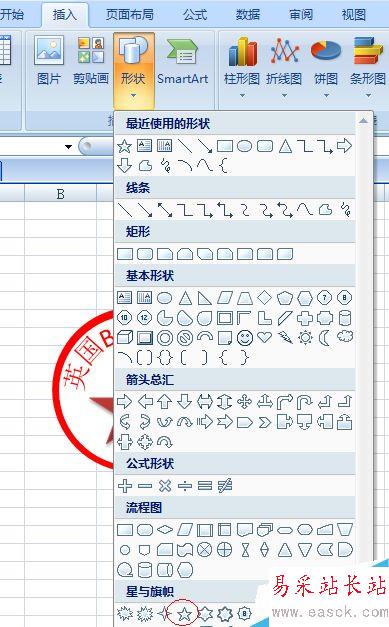7、添加五角星,選擇“插入”-->五角星形狀。