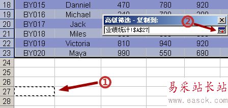 6、選擇復制到的位置。選中一個單元格就行。我們這里把它復制到原來表格下面一點位置。然后按那個彩色小按鈕
