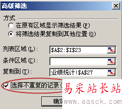 7、最重要的部分:把選擇不重復的記錄勾上。然后確定