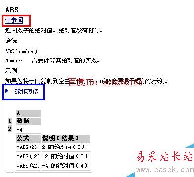 5、最下面一部分內(nèi)容就是舉例實(shí)際說明ABS函數(shù)的用法。