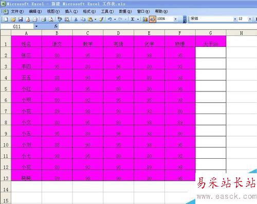 7、設置好之后單擊下方的確定按鈕,這時我們就可以看到有數值的區域都填充為紅色了,我們可以隨便在一個單元格里面輸入數字,一輸入進去,單元格就會自動填充為紅色。