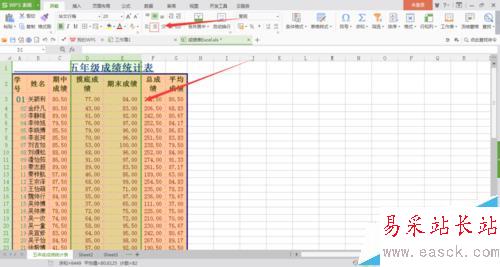 5、這時候你只用整列的選中你所移動過的,然后按一下圖中框框起來的居中按鈕就好了,這時候數(shù)字就居中了