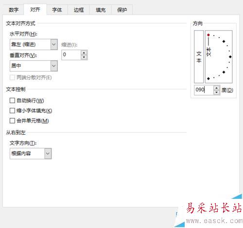 6、修改字體方向為90°,如圖所示: