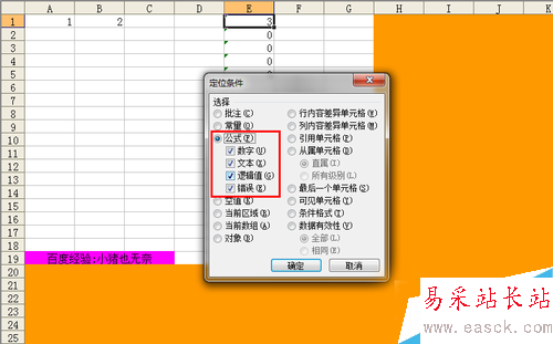 6、我們選擇“公式”,然后點擊“確定”,這些有公式的單元格,就是我們想要保護的區域。