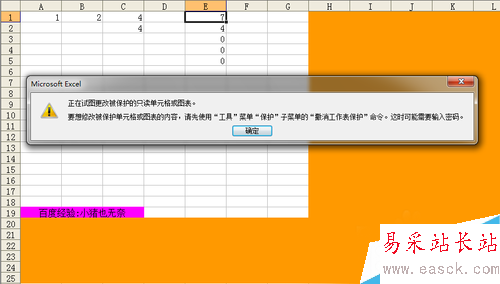 11、然后我們再驗證一下是否是區域保護了,我們點擊公式所在的單元格,發現受到系統保護,點擊其他的無公式的單元格,還可以正常編輯,達到我們想要的效果。