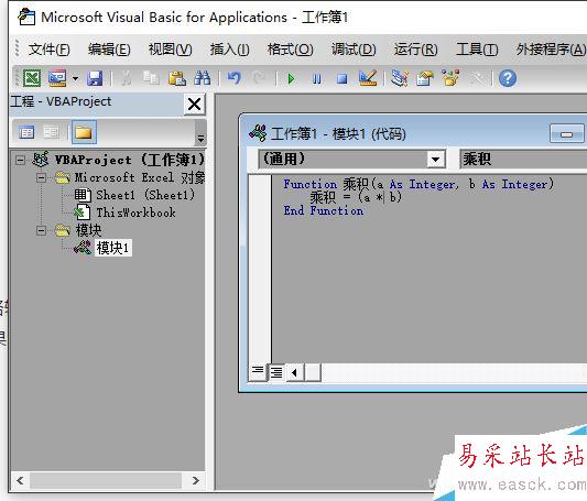 “Function”表示這是一個函數(shù),“乘積”是這個函數(shù)的名稱,括號內(nèi)聲明了兩個參數(shù),分別是整數(shù)a和b。中間一行代碼是對這兩個整數(shù)進行相乘運算。最后一行“End Function”表示函數(shù)結(jié)束。