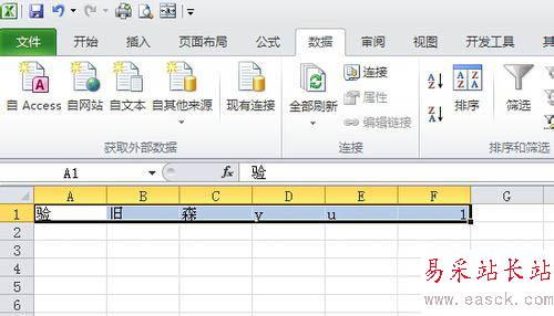 1、比如我現在要將單元格A1中的字符串“驗,舊,森,y,u,1”按照半角逗號“,”來分列。