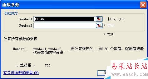 6、按照對話框內的提示,如果你要A1到A4數字的相乘,單擊確定就可以了。如果是別的數字相乘,你只是按自己的要求修改下就可以了。