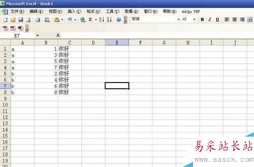 4、這個時候原先的項目就被分成ab兩欄了。我們剪切下面的b欄