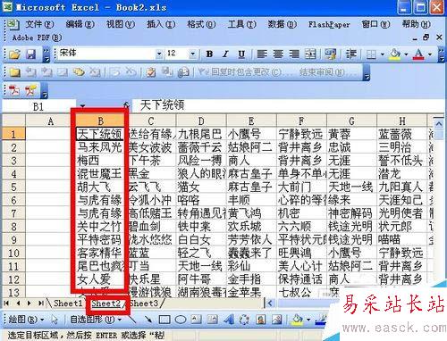 5、接著,就可以篩選啦。需要注意的是,sheet1里的第二行,已經(jīng)變?yōu)榱藄heet2里的B列,如下圖5所示,其他行依次類推。因而,在sheet2里做列篩選,即可實現(xiàn)sheet1里的行篩選。