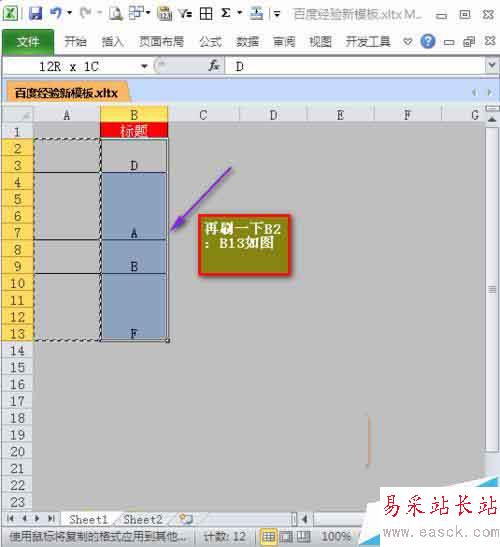 9、然后我們刷一下B列就可以了,期間的線條,我們設(shè)置一下就好了