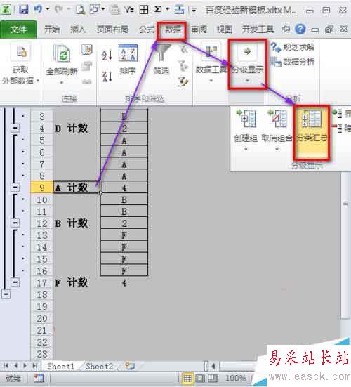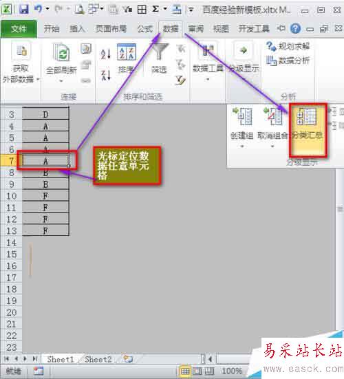 6、合并完畢后,我們要取消掉分類匯總,他的作用已經(jīng)使用完成。我們繼續(xù)點(diǎn)擊數(shù)據(jù)中的分類匯總。