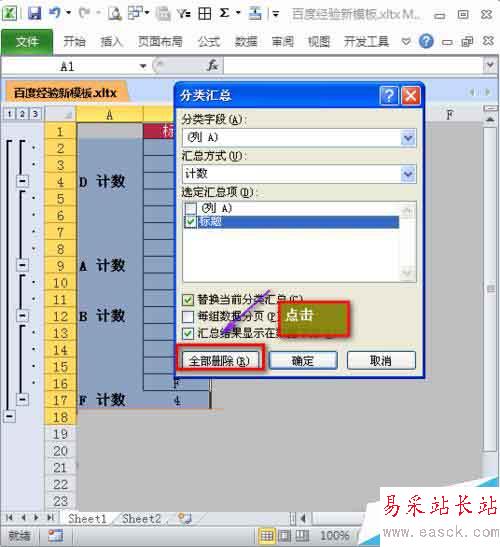 7、到分類匯總中,我們直接點(diǎn)擊全部刪除即可,其他都不需要去設(shè)置。
