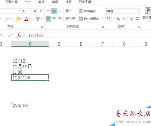 5、不過在常規格式下輸入的非正常日期的內容的數值,一樣能表現為分數形式,不過等同于文本格式,但是不會修改單元格的格式,也不能用于計算。如圖所示: