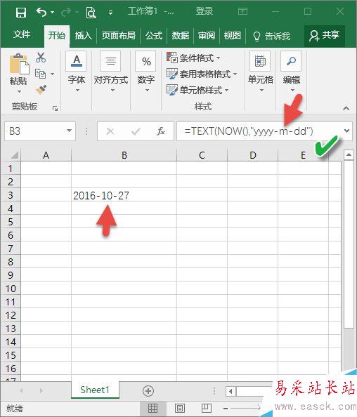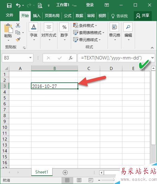 雖然如此簡單,但這并不表示生成的日期時間格式只能有如此一種。事實上,該函數可以和TEXT()函數結合,變換出豐富多彩的日期格式呢!在單元格中輸入“=TEXT(NOW(),"yyyy-mm-dd")”回車,你會看到,日期格式變成如下這個樣子: