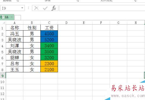 1、首先打開excel表格,工資按多少分出出幾種單元格顏色。