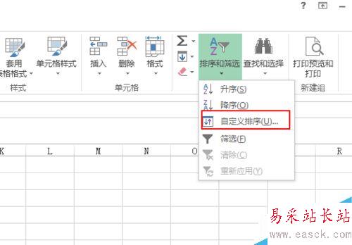2、鼠標選中表中任意單元格-排序和篩選-自定義排序。