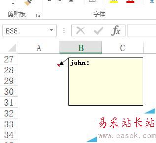 2、在工作表的單元格中插入一個批注,單元格的右上角會有一個紅色三角箭頭,如圖所示:
