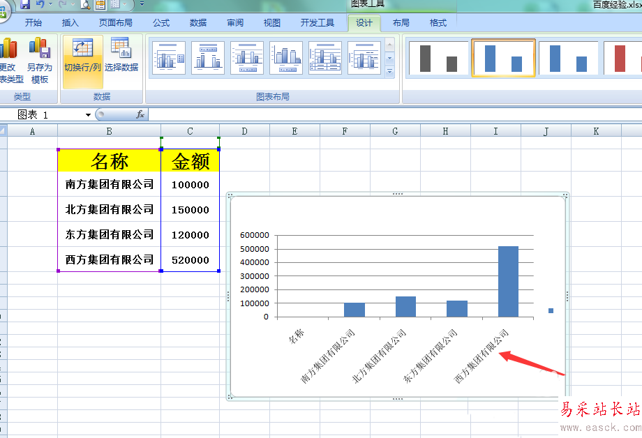 6、設(shè)置好名稱之后,點(diǎn)擊下柱形圖就會(huì)自動(dòng)轉(zhuǎn)換成名字變兩行啦,如下圖