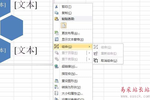 2、在smartart圖形的邊框上單擊右鍵,找到【組合】單擊以后,會(huì)出現(xiàn)【取消組合】
