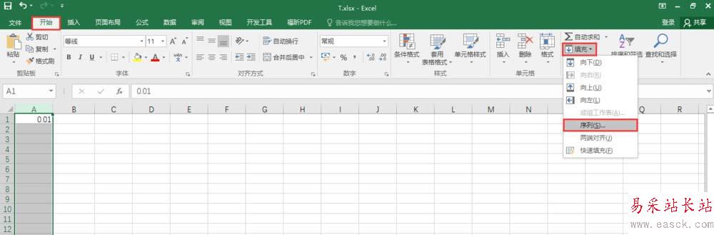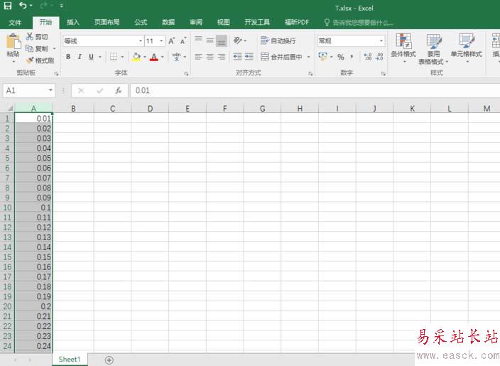 1、打開Excel2016(其他版本的軟件參照),在A1單元格輸入0.01,選中A列