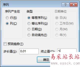 3、在步長值中填0.01(注意該值很關鍵,要盡量小才能讓曲線光滑),終止值填5(根據自己需求畫哪段函數填寫到哪里)