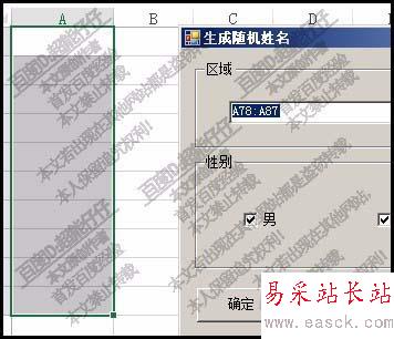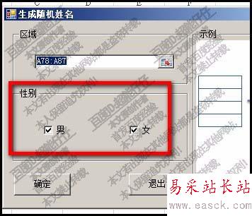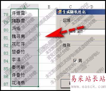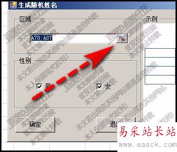 6、然后,選擇單元格區(qū)域即可。接著,再在下面性別這里,選擇要生成男姓名或是女姓名。