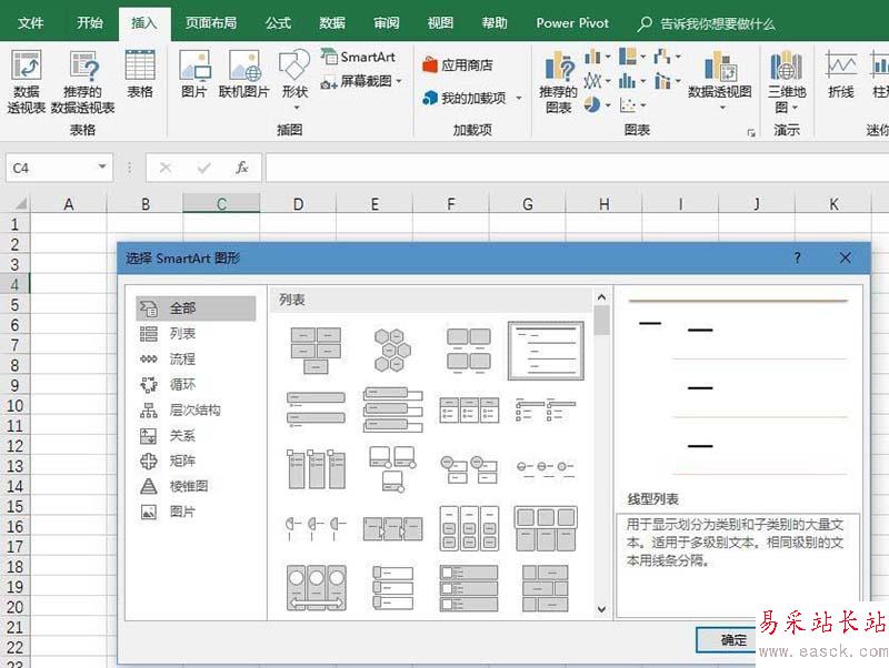 excel中可以使用SmartArt線型列表用來表示有層級關系的列表數據,該怎么制作呢?下面我們就來看看詳細的教程。