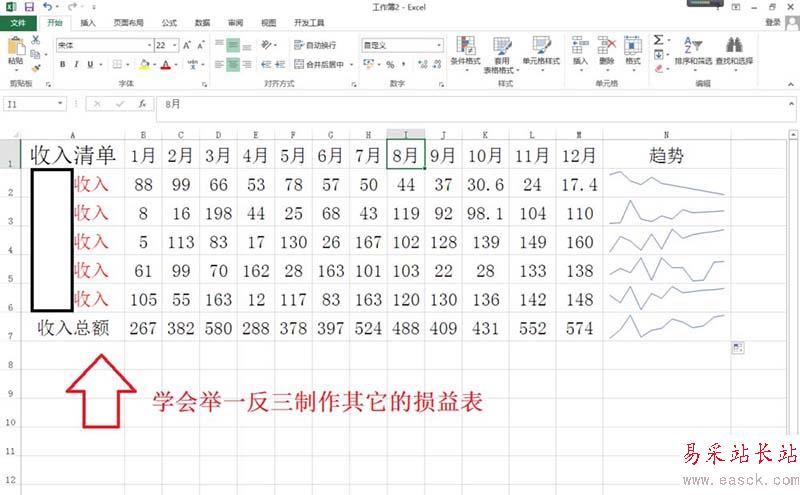 excel中將自己的收益做成損益比較容易看到自己的收入情況,下面我們就來詳細的制作方法。