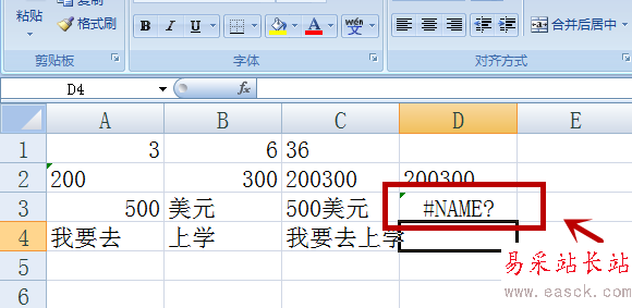 6、之后即可看到輸出的結果是錯誤的,這里大家要注意了,&連接數字是文本的時候,可以正常連接,但是文本是文字的時候,就無法正常連接,就會出現錯誤,如圖所示。