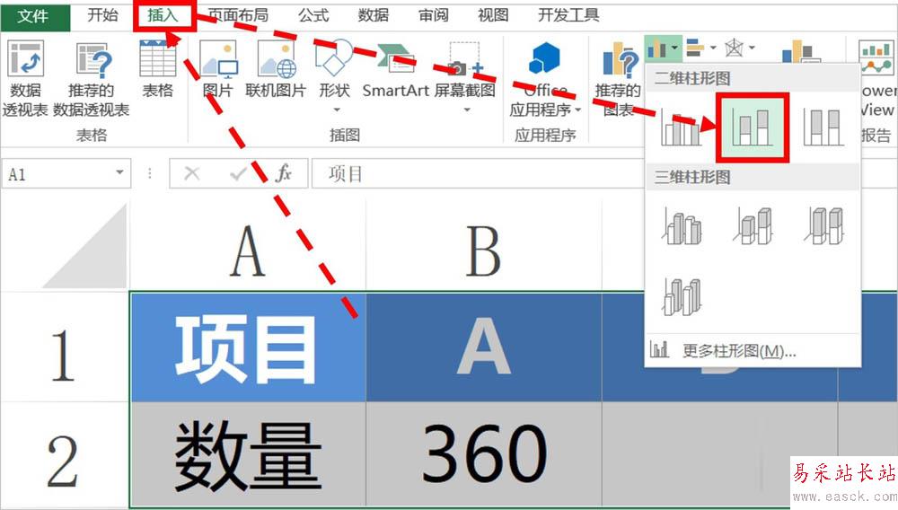 1、按Ctrl+A全選表格,點擊"插入"菜單下的"堆積柱形圖"插入圖表。
