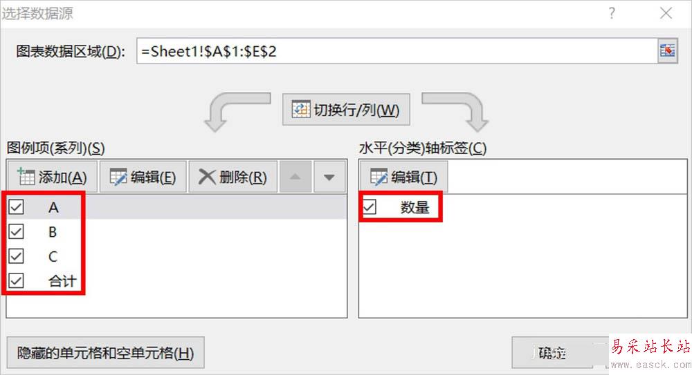 這顯然不是我們想要的效果,我們點擊"選擇數據"進行調整。