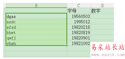 打開要處理的Excel表格,如圖,我們需要將單元格中的數(shù)字和英文分離,